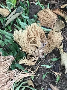 It was all familiar to me, the plants, the birds, the smells of the dry summer in the woods as I walked along, unaware, not really living in the moment. That is, until something new and strange appeared at my feet, an unusual fungi at the edge of the path, frothy and lacy. My hiking companions spotted it first, calling out for me to pay attention to this new addition to the area’s botanical richness. Its beige tones and intricate structure almost didn’t catch my eye, yet it is an amazing and wondrous delight, stopping me midstride.